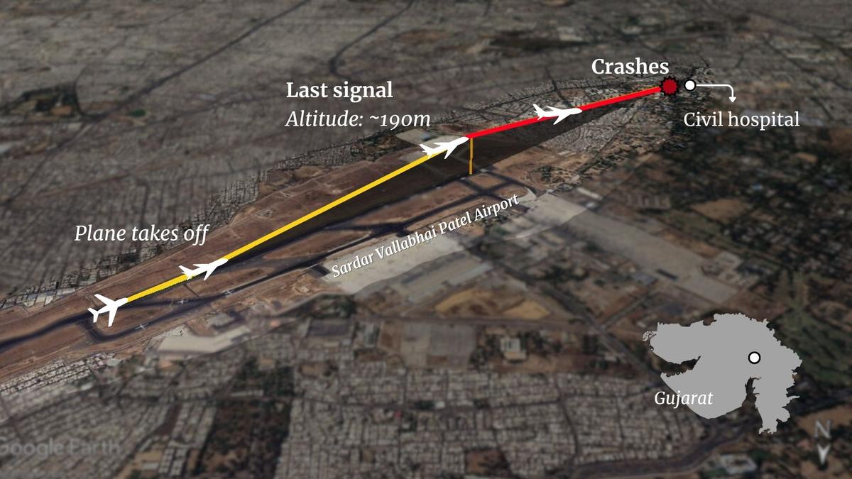 The flight, headed to London, crashed shortly after it took off from the Sardar Vallabhai Patel International Airport in Ahmedabad, reaching a height of over 600 feet before the signal was lost. The plane crashed into a hostel canteen area around 2 km away from the point of last contact, resulting in several casualties.