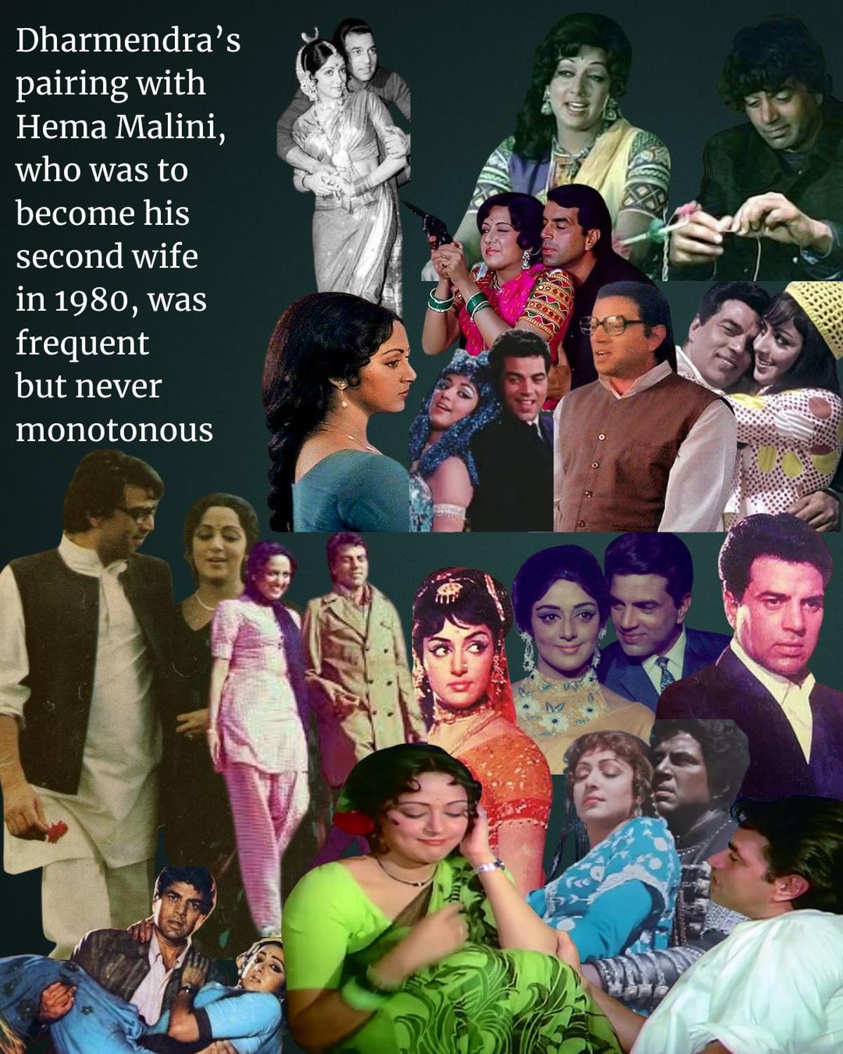 His pairing with Hema Malini, who was to become his second wife in 1980, was frequent but there was never a phase in Dharmendra’s professional life when he was in danger of succumbing to monotony in terms of either the films he chose or the co-actors he worked with.
