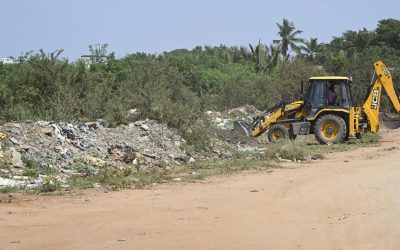 Staff from the Coimbatore Corporation were found clearing debris dumped along the sides of the mud road using earthmovers on Wednesday.