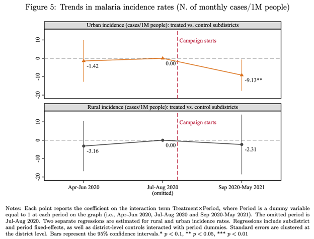 The researchers then compared those results to publicly available health data in India. They found that there was a reduction of malaria incidents only in urban areas, but in those areas, there was a 30 percent reduction in India’s incidence rate. “So overall, we find that the campaign works,” says Donati, “but only among a specific subgroup, which is less at risk of the disease.” The results were not driven by the ad content being ineffective for rural populations but rather by the insufficient reach of ads in those areas.