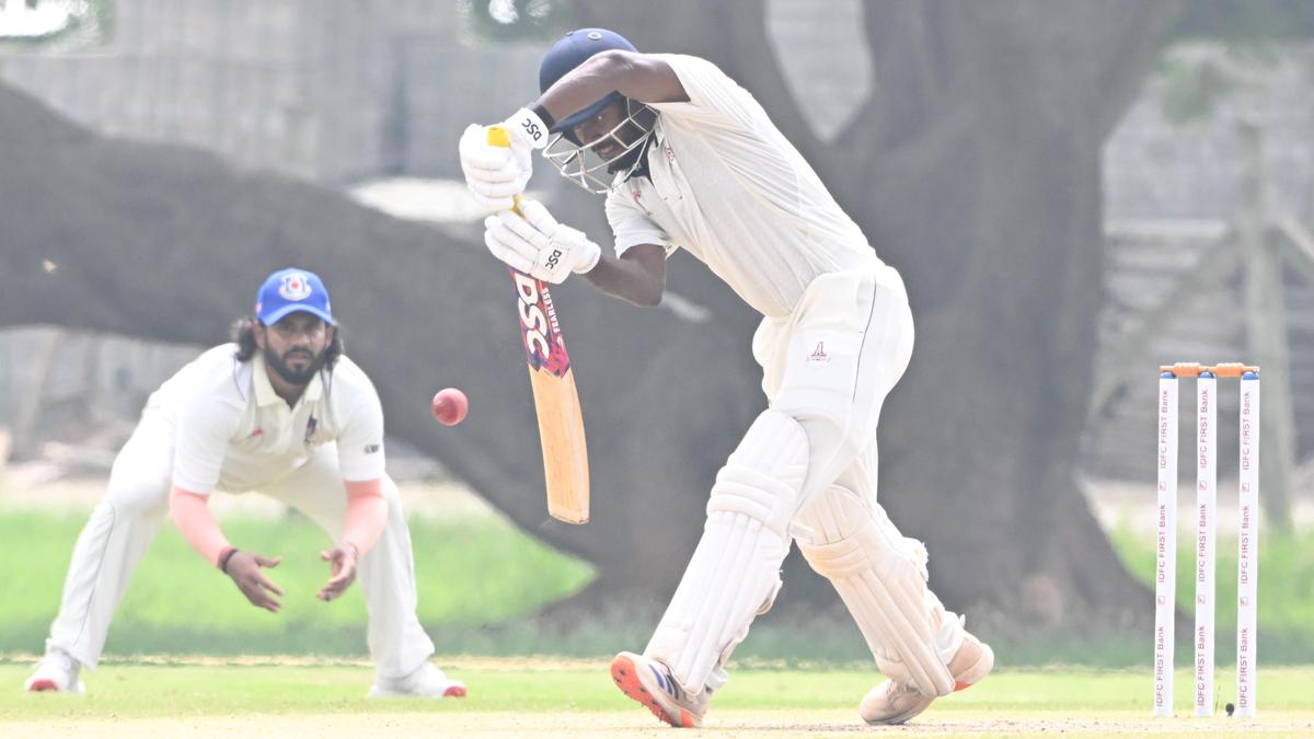 There seems to be consensus among a wide section of batters that the switch from the white-ball formats to the classical version is harder to make. For Tamil Nadu’s G. Ajitesh, then, the challenge to curb his attacking instincts and show that he belongs on his Ranji Trophy debut against Uttar Pradesh at the Sri Ramakrishna College ground wouldn’t have been straightforward. His intrinsically flamboyant style, apparent in his four seasons of playing the TNPL, had already earned him 11 T20 appearances for the State.