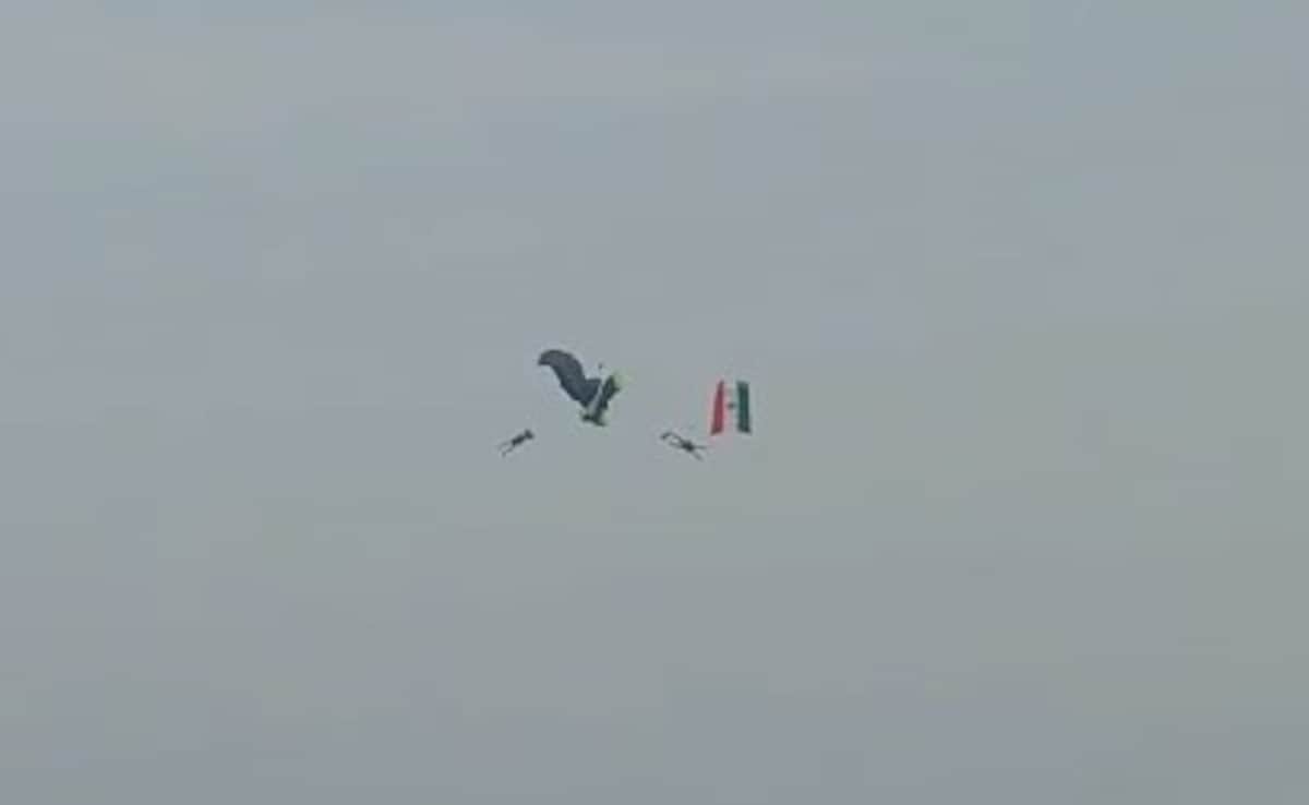 A video showed the parachutes entangled, one officer descending with the national flag and another officer’s parachute getting stuck. The two officers quickly lost height couldn’t control the descent and fell into the water close to the shore.