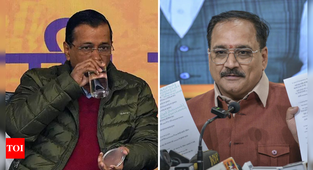 Former Delhi CM Kejriwal and Delhi BJP chief Virendra Sachdeva (File photo) NEW DELHI: Delhi BJP chief Virendra Sachdeva on…