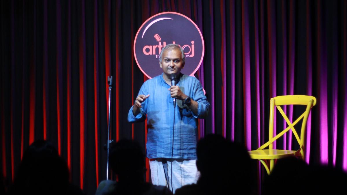 Arun Sriram at one of his shows “Perhaps if I talked about potholes in Kannada, they might get filled,” laughs…