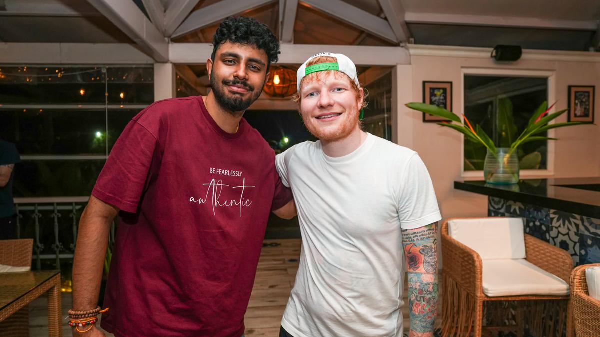 Ganesh Murali Iyer with Ed Sheeran | Photo Credit: Special Arrangement In between a jam session with Ed Sheeran in…
