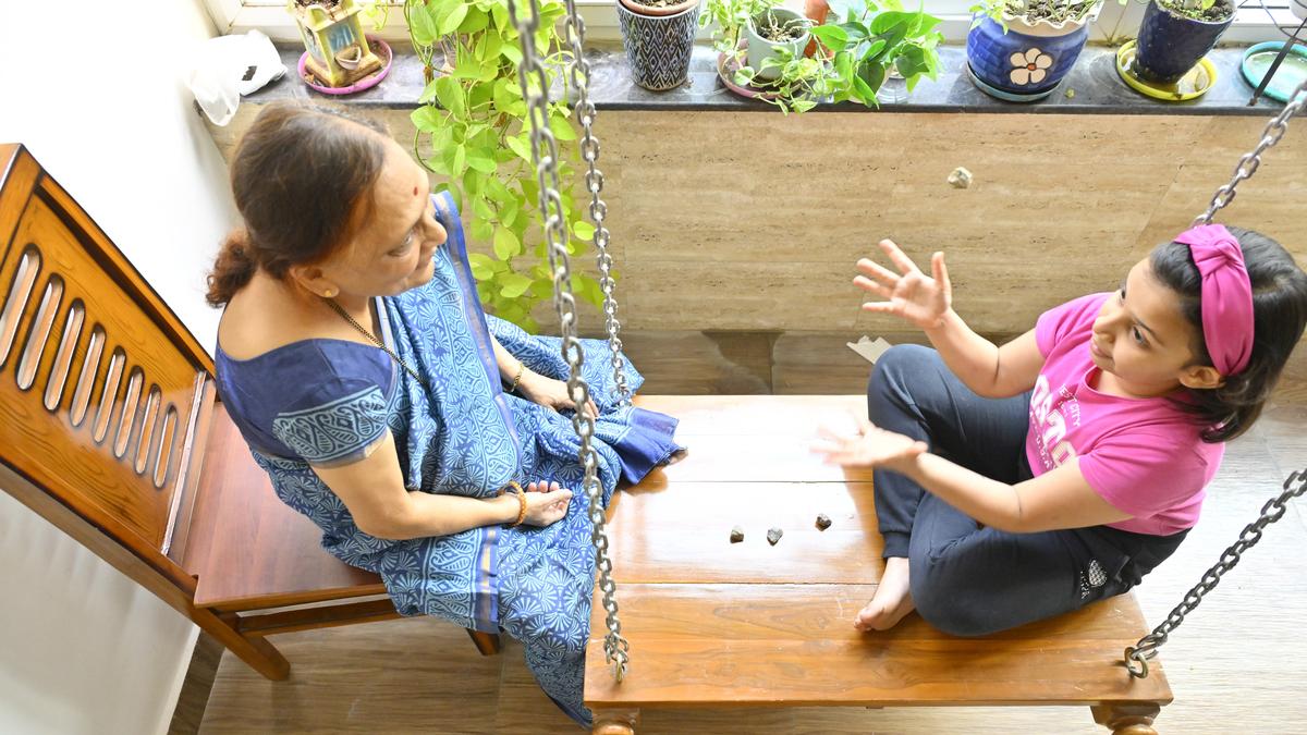 Aarohi Kale learning the traditional Indian game of five stones from her grandmother Neeta Bhogle. In Korean this game is…