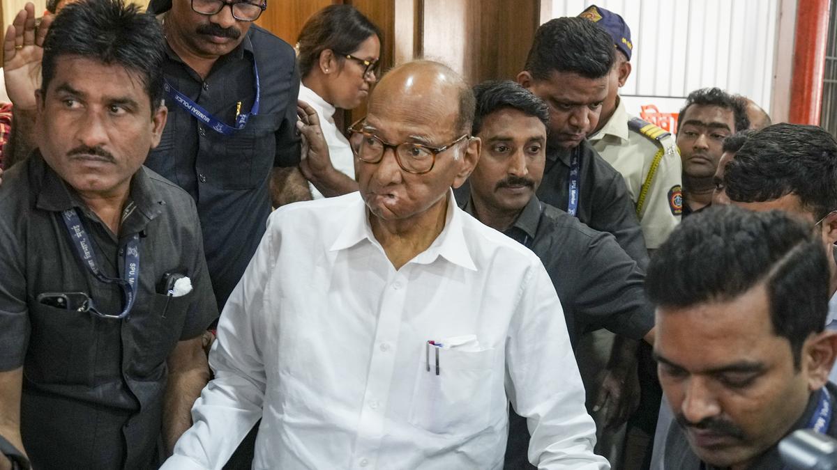 NCP (SP) chief Sharad Pawar leaves Shivalaya Shiv Sena office after a meeting with Maharashtra’s Chief Electoral Officer S Chockalingam…