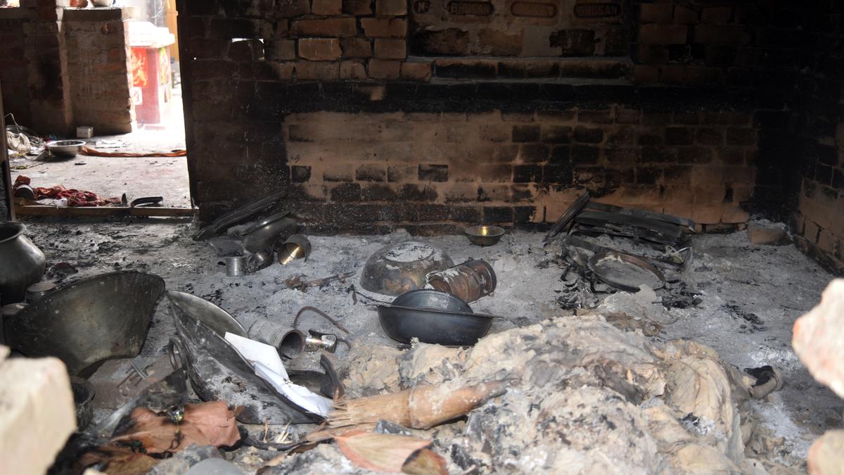 One of the several houses which were put to fire by the mob at Betbona in Dhulian, Murshidabad, where violence…