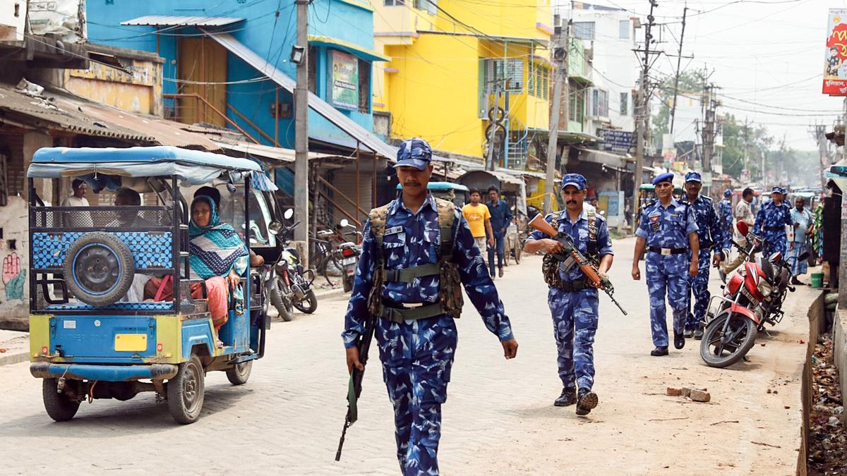 Rapid Action Force (RAF) personnel conduct a route march in the violence hit area which broke out during a protest…