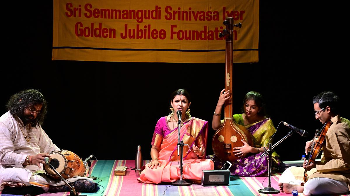 Patri Satish Kumar, Kruthi Vittal and L. Ramakrishnan performed at Kasturi Srinivasan Hall. | Photo Credit: VELANKANNI RAJ B. In a…