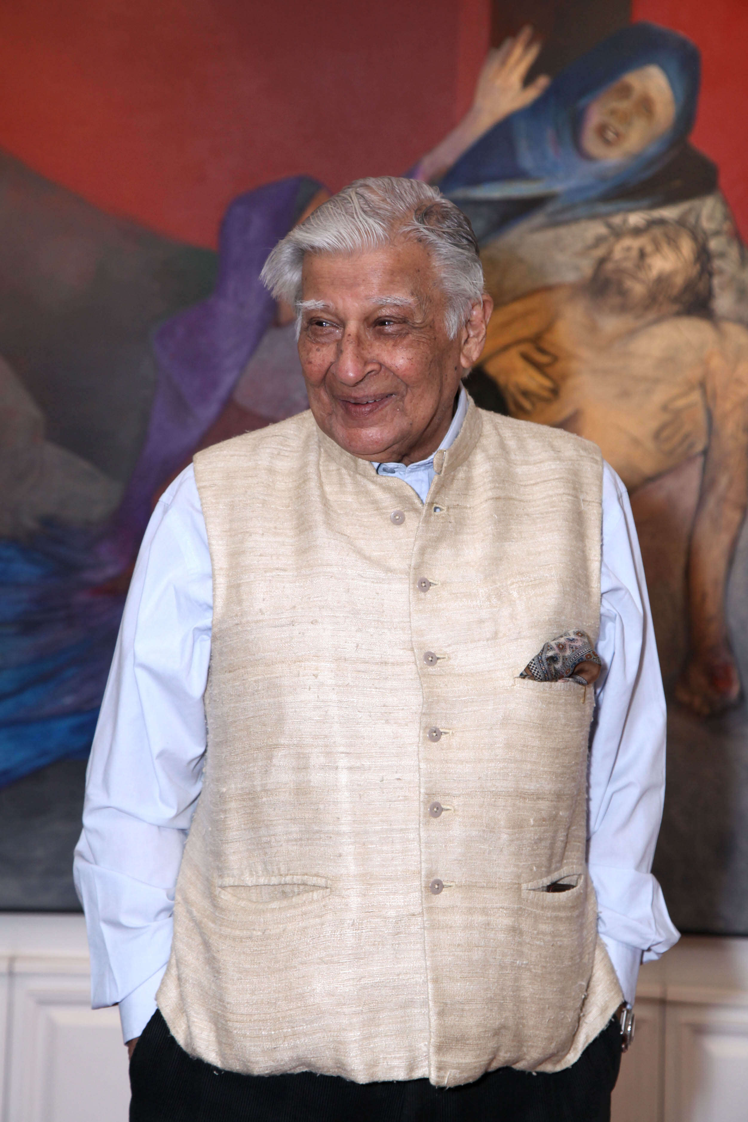 Brought together by Namtech Fine Arts and presented by the IIC, the two large trees create a charming backdrop as they nestle the beauty of the human form as well as archetypal austerity in the hands of Himmat Shah who passed away this year. Himmat Shah’s favourite ceramic artist Keshari Nandan stood in front of his brown root marble  work that is a reductive abstract study of a slim cone created in a calm contemplative mood and said he had never seen such a work of strength and engagement.